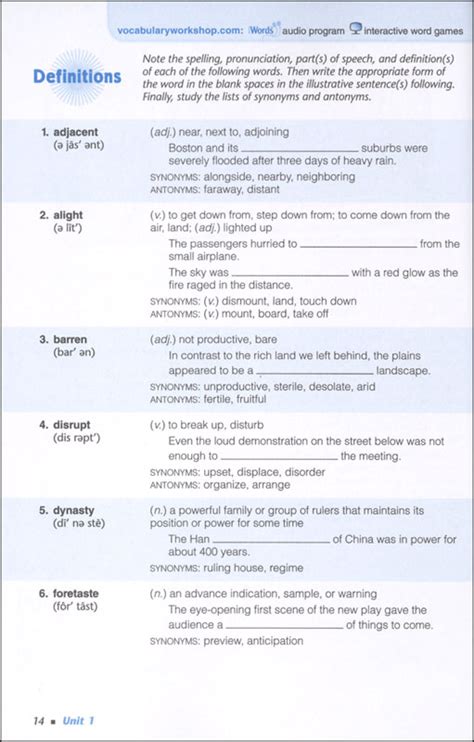Read Vocabulary Workshop Answers Unit 4 Doc