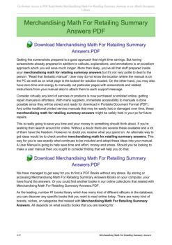 Download Merchandising Math For Retailing Summary Problems Answers Reader online is a convenient and frugal way to read Merchandising Math For Retailing Summary Problems Answers you love right from the comfort of your own home. Yes, there sites where you can get Reader "for free" but the ones listed below are clean from viruses and completely legal to use.
